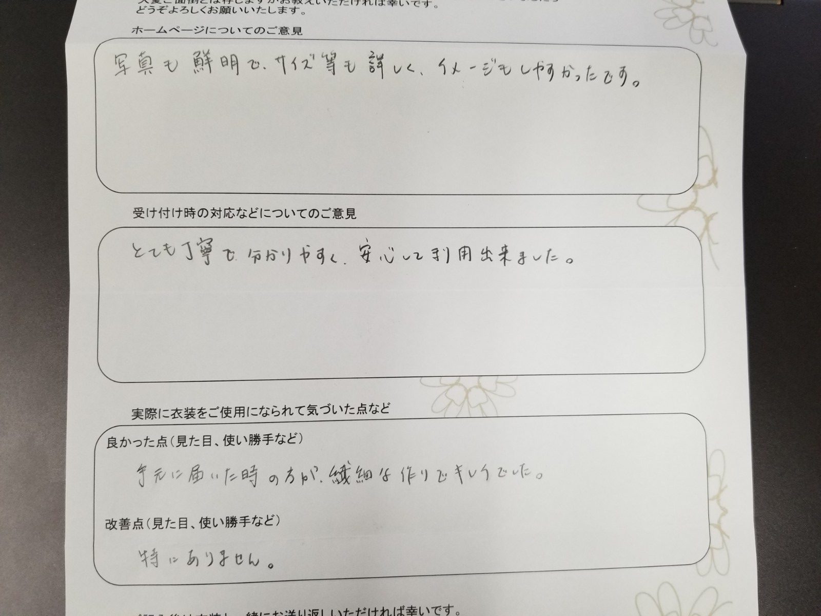 お客様からいただいたアンケートをご紹介します。