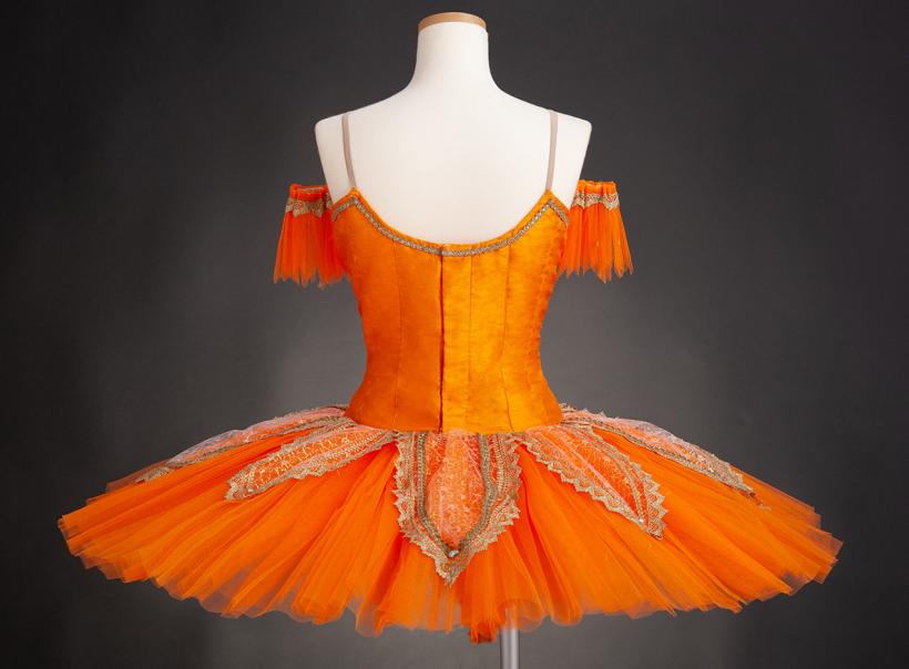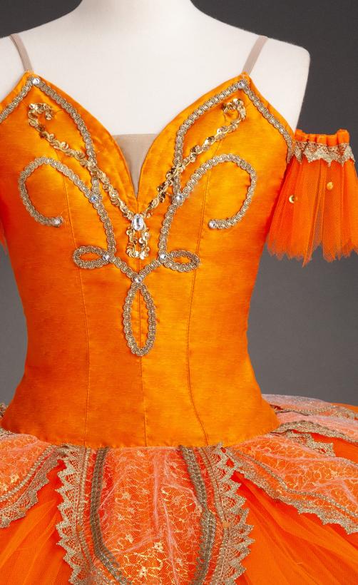 オレンジにゴールドの飾りが映えるお衣装です。